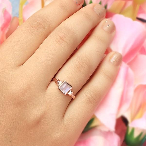 The dauntless design of this lovely 14k rose gold ring with a square moonstone can be a very valiant statement from you. It can show how authoritative you are and how things can not be taken for granted in front of you.