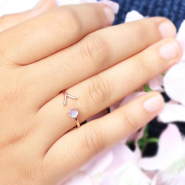 Various rose gold vermeil moonstone rings will appear in front of you but this is one of those rings that will make you turn around and have another look. It has a unique looking structure and a petite round moonstone to add just a tinge of magic.