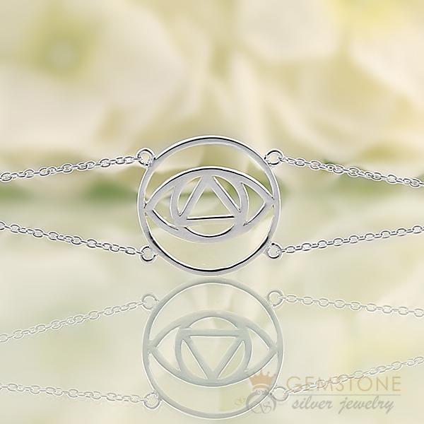 This brow chakra sterling silver bracelet is here to become the eloquent piece in your jewelry box. It shows the symbol of brow chakra that is the chakra of 6th sense. It helps you discover the world in a whole different way.