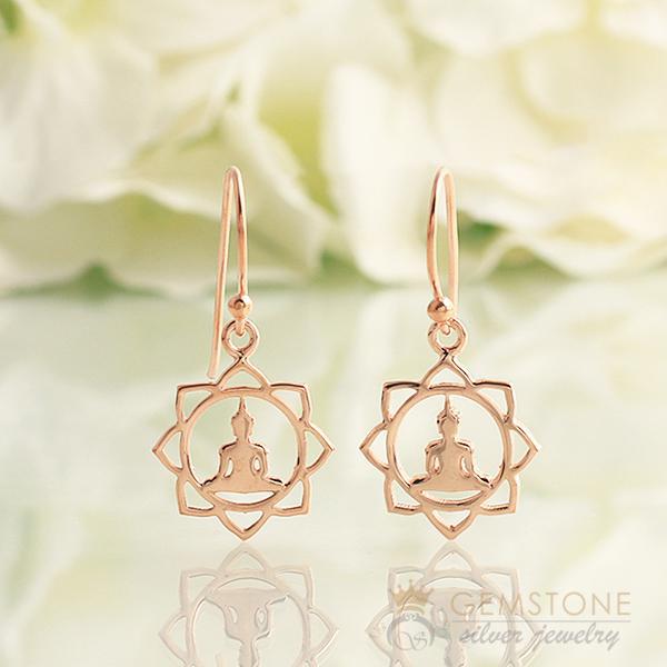 Buddha good karma chakra represents the law of moral causation and inspires us to do good, always because whatever goes around, comes back around and this is written in the Buddhist transcripts. This pair of earrings is overlaid with rose gold to give them a chic look.