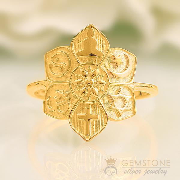 Coexisting is something that we have all been taught since the beginning. Religion is just a way to learn about new cultures and languages, not to create boundaries and walls. This ring is for all those who are a fan of secularism and sterling silver jewelry overlaid with gold.
