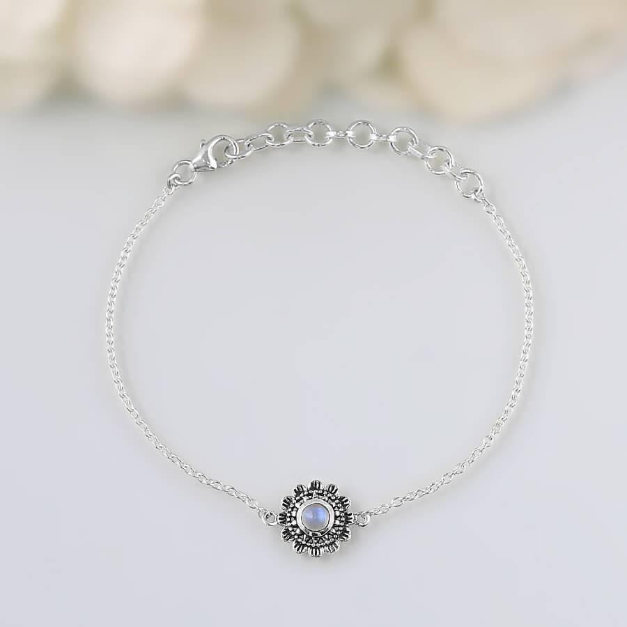 Moonflower' is a moonstone bracelet that will definitely become your favorite with it's floral design and build so strong that it will last as long as you want it to.