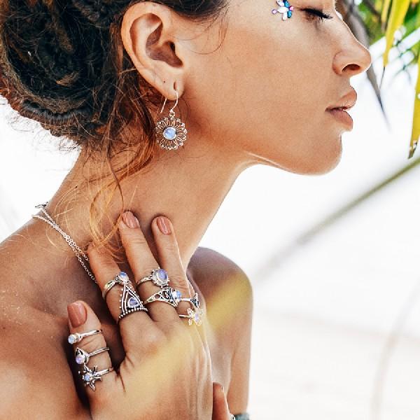 Named after Apollo's sanctuary, this pair of earrings represent the godly powers a moonstone holds. The flower design makes these earrings a contemporary delight to the eyes. They will definitely complete your look in a wondrous way, and will also help you stay connected with the loved ones living far away but still close in your heart.