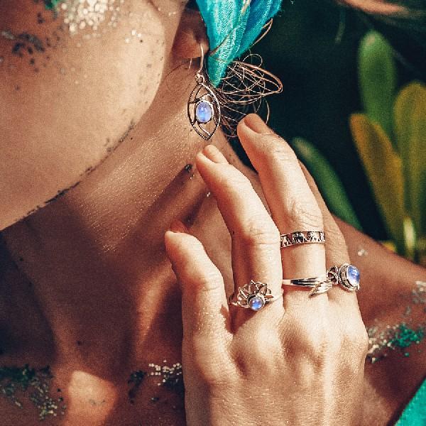 These lovely eye-shaped earrings feature a centrally studded round-shaped moonstone that wards off the negative energies away from its wearer, cleansing their aura. It also complements the boho woman's style with its chic design. Wear these handcrafted pieces with a simple moonstone necklace and embrace your look for that tea party.
