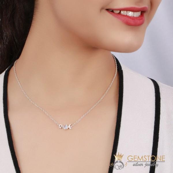 With the moon, there are always stars to accompany it through the night. This is a moonstone silver necklace that will remind you of your closest companion, be it your mother, your wife, your best friend, or anyone else. The sterling silver provides strength to the whole structure which means you can wear it every day without a worry. Adjustable Necklace Chain Length 16" |