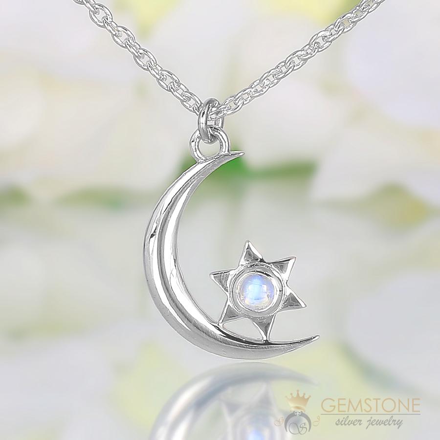 The scene that can mesmerize even the most sorrowful soul is of a night sky with crescent moon and the pole star. This is a sight that is very common but equally mesmerizing every day, maybe even more. And, to wear all that as a necklace with moonstone in it just adds to the beauty and provides you with the magical abilities that moonstone holds. Adjustable Necklace Chain Length 16" |