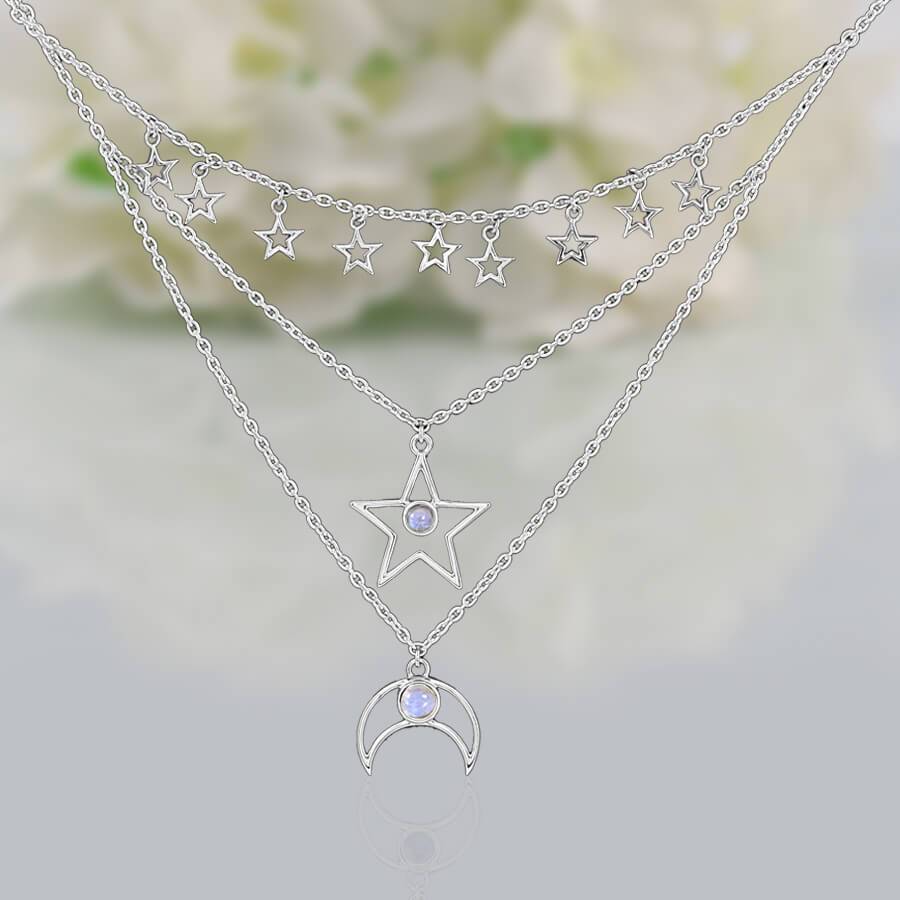 The night sky is full of energy and all that energy is held by the heavenly bodies, like the stars and the moon. Moon being the premier and stars being the followers. This scene has been perfected captured in this rainbow moonstone necklace. Adjustable Necklace Chain Length 16" |