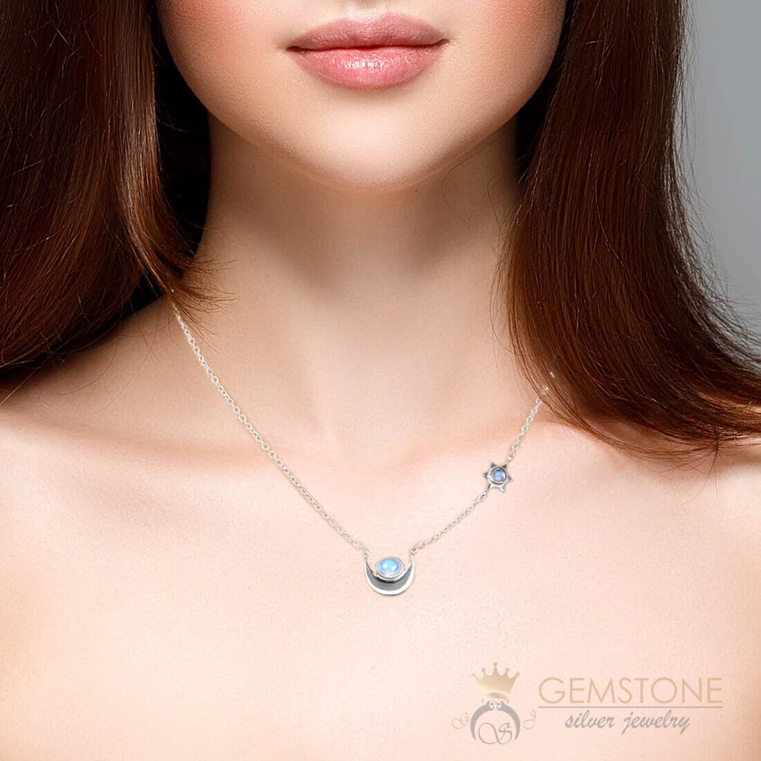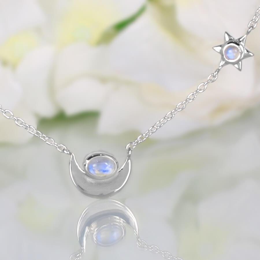 For those who always like off-beat, this moonstone silver necklace is a treat. It not only expresses the love for moon and it's illumination, it also features a star studded with moonstone for a more realistic celestial feel. Cheer your soul with moonstone's calming and creative energies. Perfect for you if you are an artist or would want to become one any time in future. Adjustable Necklace Chain Length 16" |