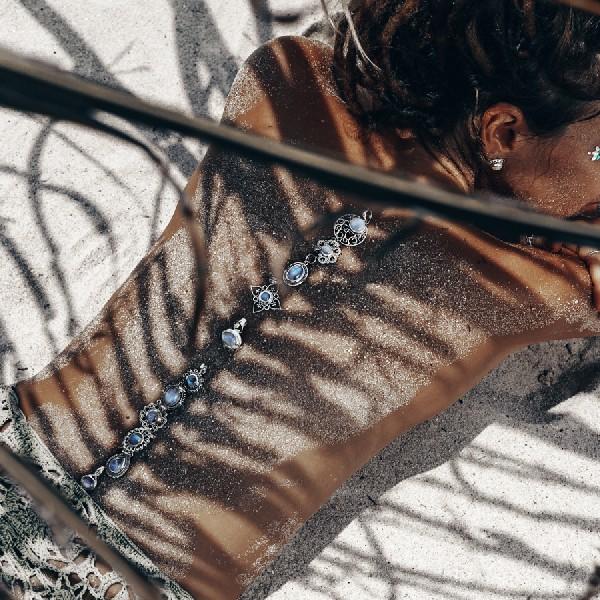 Rainbow moonstone jewelry with a blooming character