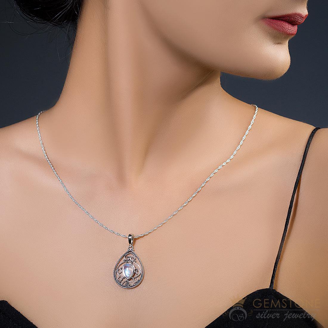 No matter where you come from or what you do, you cannot deny the fact that this pendant looks heavenly. Its one of the designs that has come from the imperial times, combined with an inverted moondrop shaped moonstone. Sterling silver is used to build this pendant so that even the delicate looking ones are not delicate at all. They can be worn any time, any where, in any condition.
