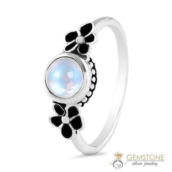 The blooming flowers on both sides of this alluring moonstone ring does total justice to its design. It is almost whimsical to look at this piece of perfection with a shining round moonstone in the middle. Let this shine guide you through difficult times and make you wiser by wearing this ring on occasions or on a day-to-day basis.