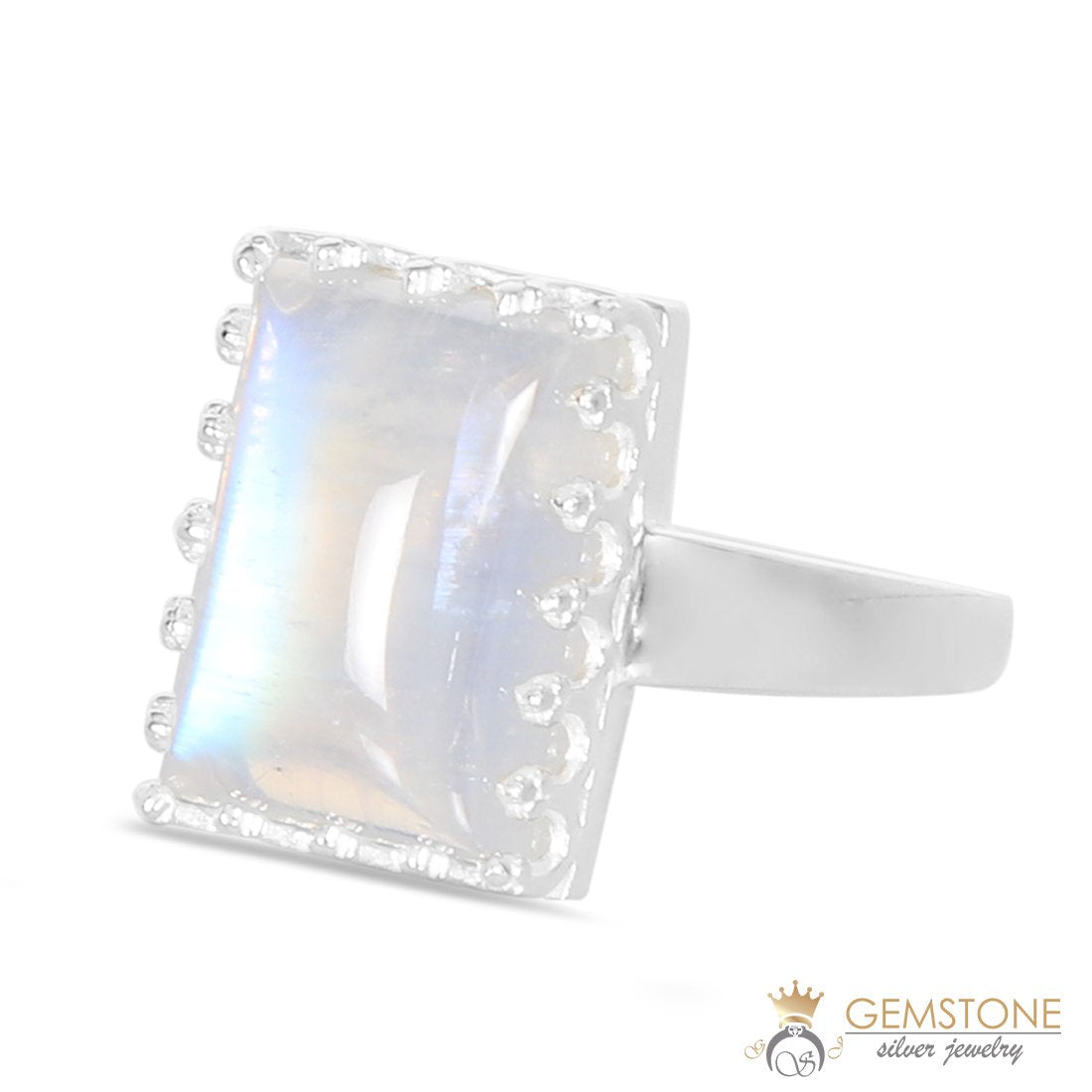 The crown setting of this colossal handmade rainbow moonstone ring will not only capture your heart, but it will also make you a calmer and wiser person.