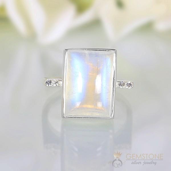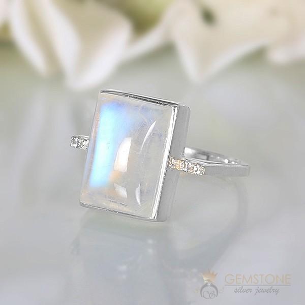 This is the moonstone gem ring that will redefine your appearance and make a bold statement with the huge rectangle moonstone. The bigger the moonstone, the better is its blue sheen visible.