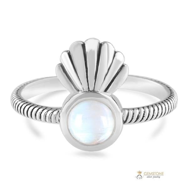 This is a beach ring with a beautiful round moonstone studded on it and a marine design with sterling silver.