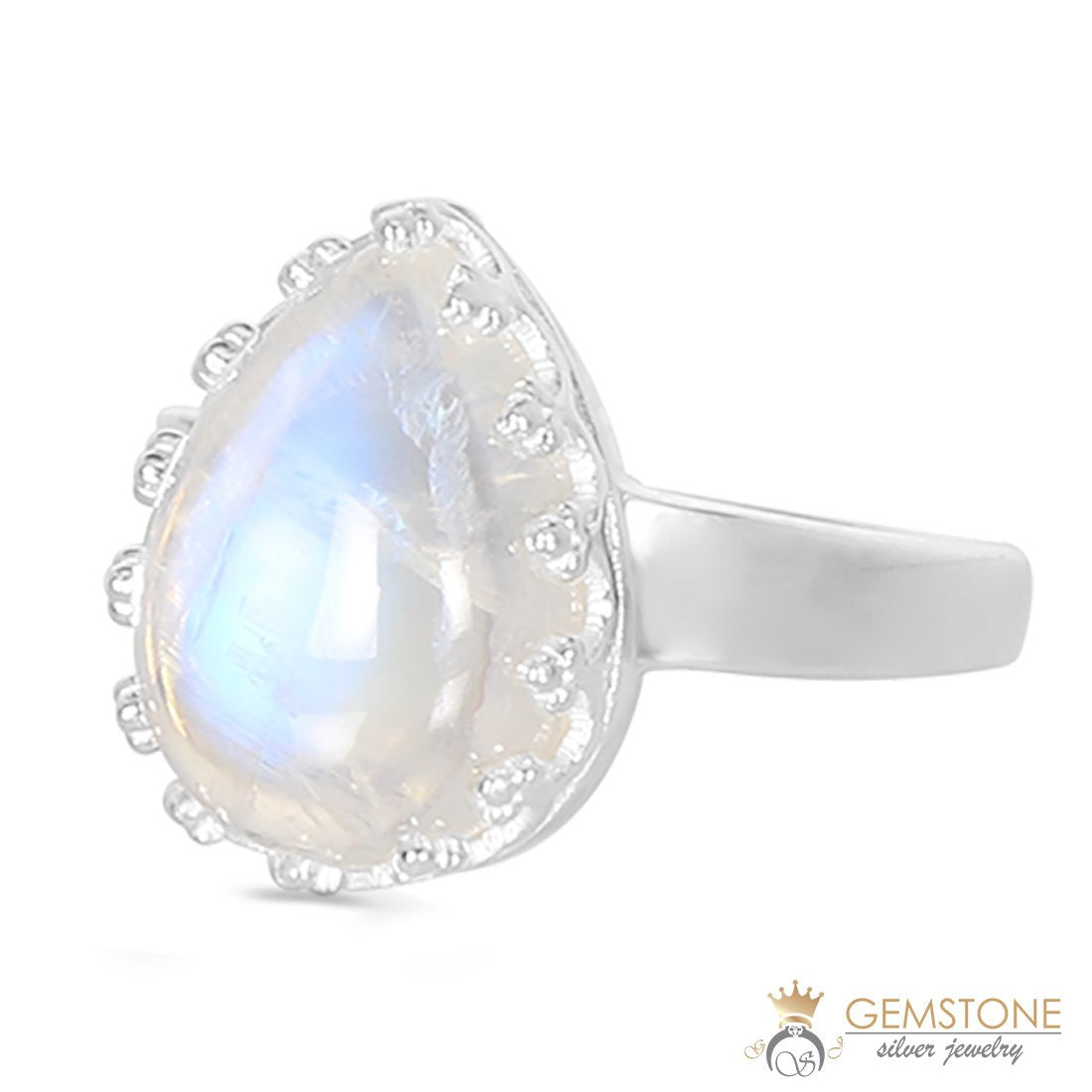 This teardrop shaped moonstone crown ring is the stuff of the most sweetest dreams because it is one of those rings that come by once in a very long time.