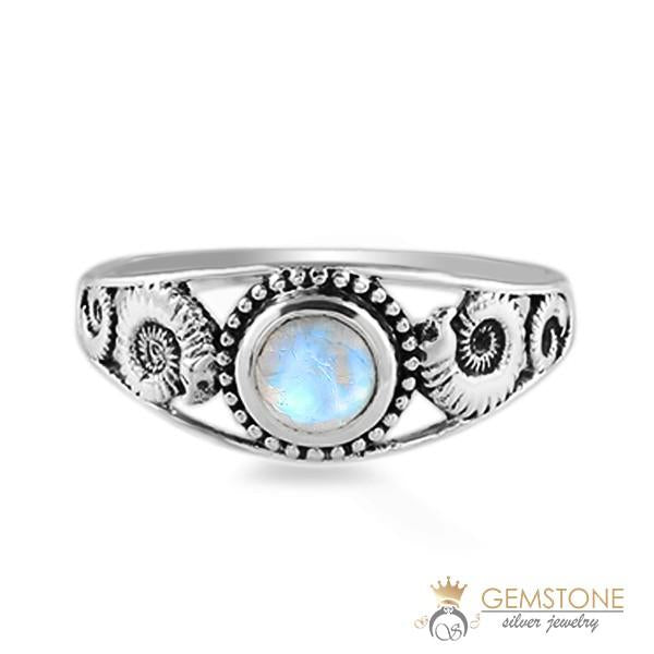Some things just require a glance to become your favorite, and this ring is exactly that. It will capture your attention from a distance, despite its small size. The moonstone is placed between two ammonite fossils chiseled in silver, giving the whole marine theme a new meaning. It is sure to turn some heads at parties and get-togethers.
