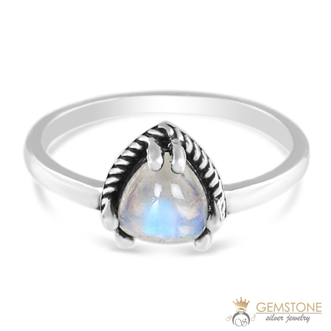 The moonstone in this ring looks like an enchanted drop of water that has been blessed with various colors.