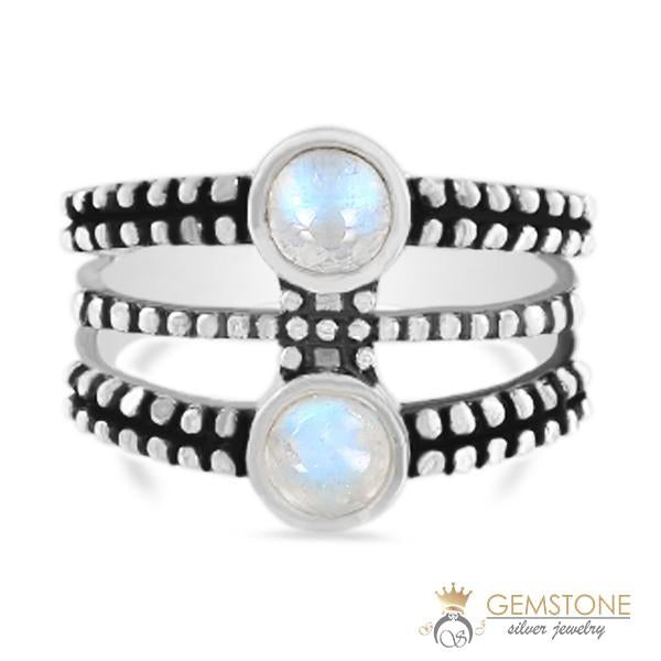 This is a phenomenal-looking ring that multiplies the moonstone's abilities as It contains two of them. It is a ring that features round moonstones that look like nurturing eyes always looking at you, caring about you. These qualities are synonymous to moonstone's qualities as it is known to protect and nurture all who keep it by their side. It is known to get the wearers through difficult times.