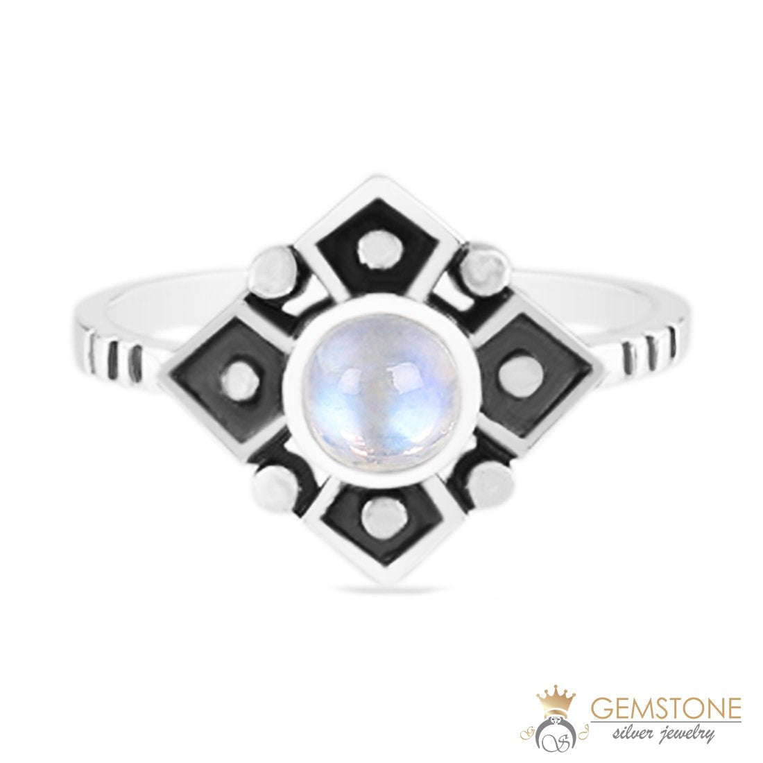 This 'Classic Defiance' is a simple moonstone ring that emits healing energies using the round cab-cut moonstone in the middle.
