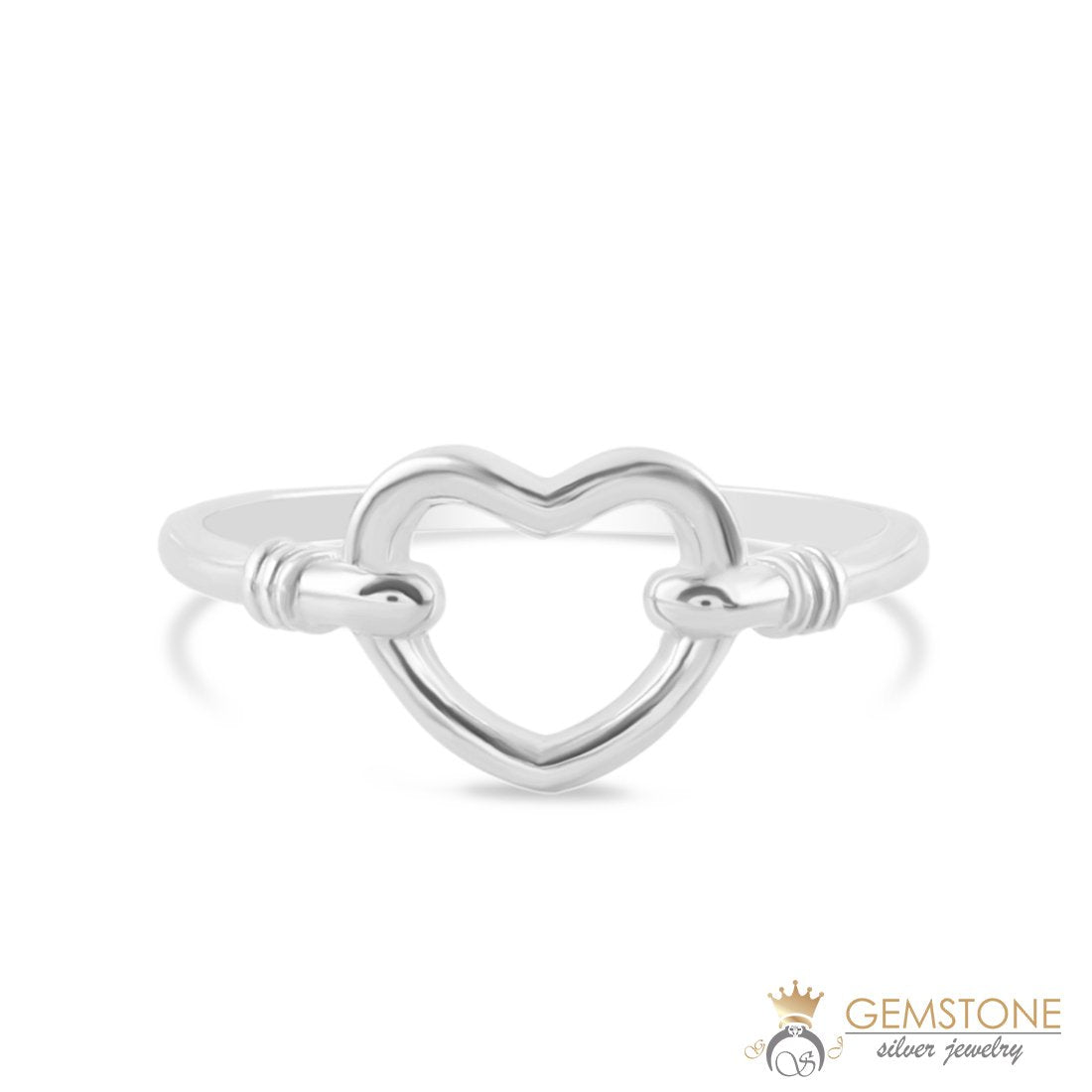 Express your immense love to your partner with this alluring ring with a heart held by two links forming a ring. It is made with sterling silver, so that guarantees you that this ring will last forever, just like your bond.