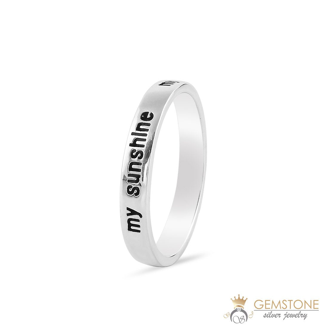 This sterling silver ring is the perfect ring to give to your loved one as it is one of the most meaningful gifts you can ever give. It has "my sunshine" inscribed in black as a contrast to silver which highlights every word and enhances the meaning.