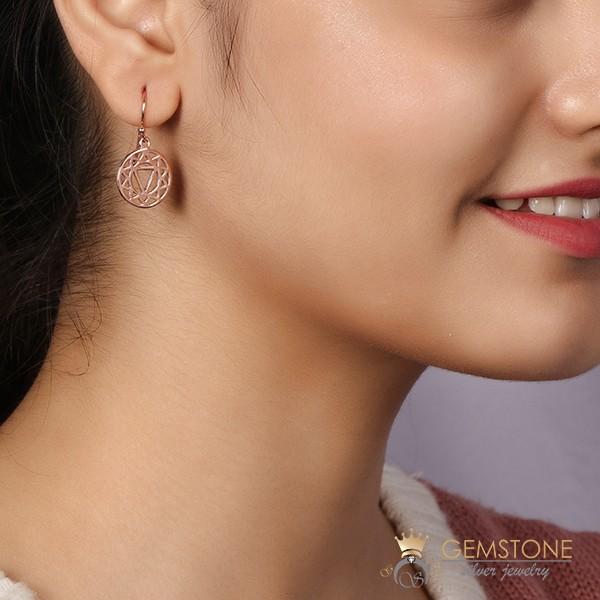Solar plexus chakra earrings represent the intricate design of the 3rd chakra of the body. It is the chakra of wisdom and decisiveness and can be paired with moonstone for greater effects. These earrings get the rose gold overlay over sterling silver in a smooth fashion for a pleasing appearance.