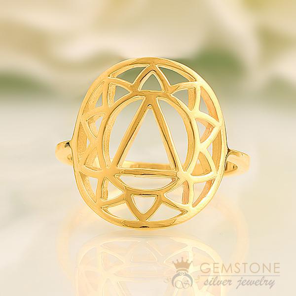 To be able to do what you want requires confidence in yourself and for that, you require a healthy solar plexus chakra. This ring reminds you to always believe in yourself with the design of solar plexus chakra. The build is of sterling silver and the overlay is of gold.