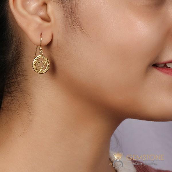 Throat chakra is very well defined as the energy center that controls our speech and lets us know what to say and when to say it. These gold overlay earrings symbolize this chakra with their ravishing appearance and sterling silver core.